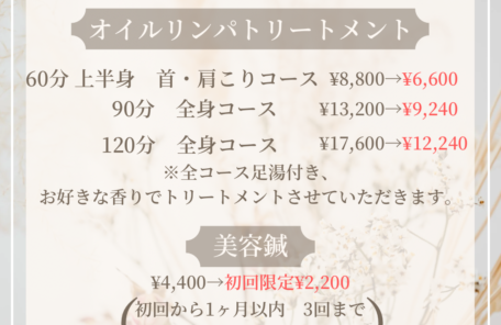 オイルリンパトリートメントメニューをお得にお試しいただけ…